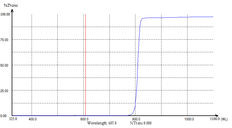 Transmission : Il permet à la lumière avec des longueurs d'onde plus longues qu'une valeur de coupure spécifique (par exemple, 550 nm, 600 nm, 755 nm) de passer à travers avec une très haute efficacité.